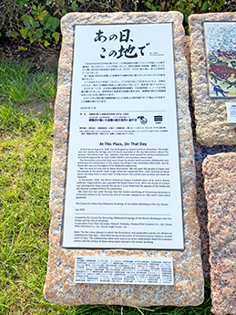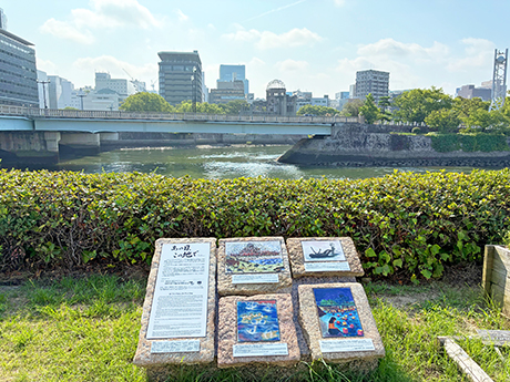 この会では、昨年より計画をすすめ、今回は、「被爆者が描いた原爆の絵を街角に返す会」と広島市との初の共同制作として広島平和公園の対岸、原爆ドームを望む広島市中区本川町(相生橋西詰河川緑地)に設置されました。